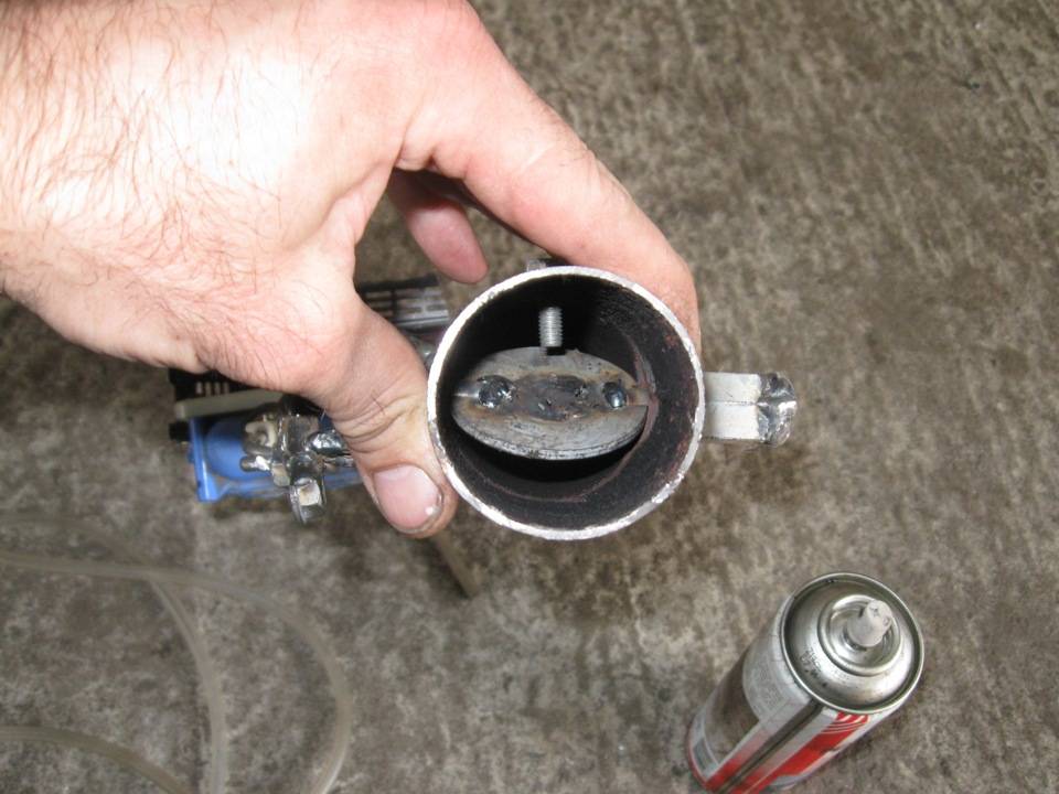 - Готовую заслонку вваривают в резонатор со стороны глушителя.