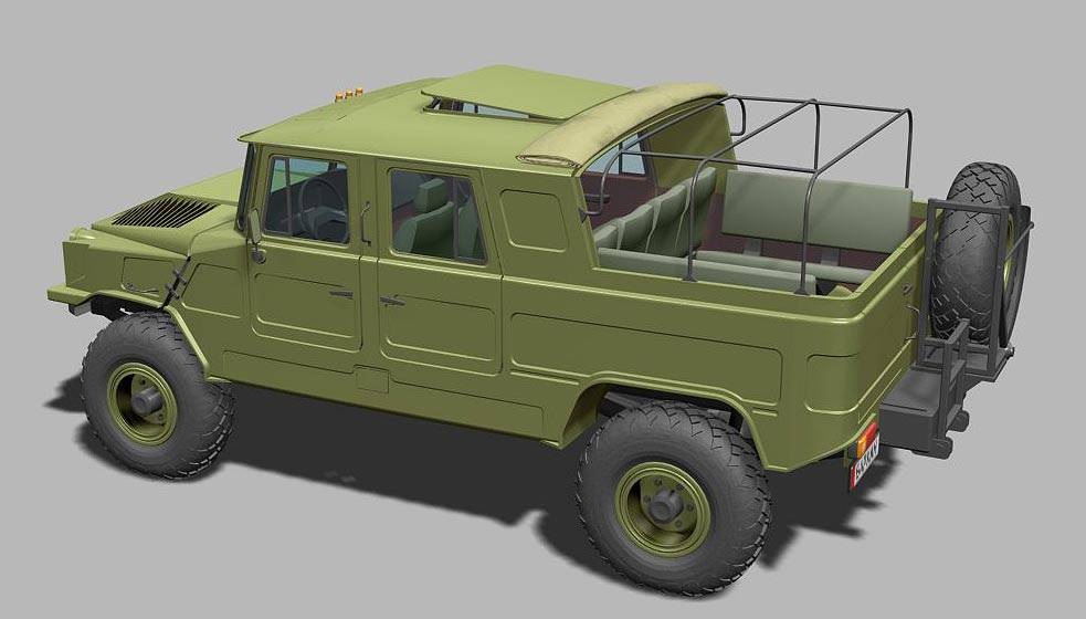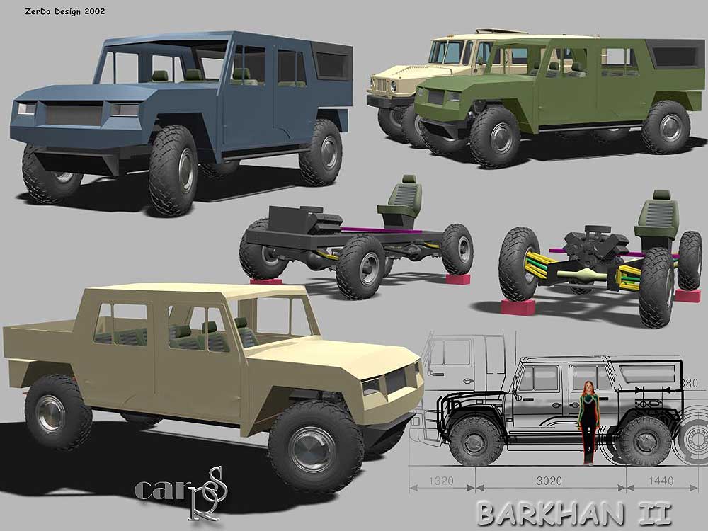 Большой «УАЗик» на десять персон… Так вкратце можно охарактеризовать эту нашу разработку :))… Действительно, машина по силуэту напоминает родного «козлика»… Кто-то сразу видит в нем «шестьдесят шестой», а кому может пригрезится и «Хаммер»… Но, это — «Бархан»!!!
