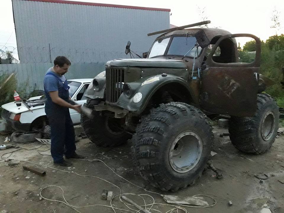 Уважаемые посетители сайта «Самоделкин друг» сегодня мы с вами рассмотрим болотоход-вездеход необычной компоновки и конструкции собранный Artemgr 33 из Владимирской области своими руками. Кабина от легендарного Советского грузовика ЗИЛ-157. Пошаговые фото сборки прилагаются, а так же видео с испытаний вездехода. Данный вездеход на шинах низкого давления был собран первоначально на базе Советского внедорожного автомобиля ГАЗ-69 с небольшими доработками. Но в дальнейшем после очередных покатушек по бездорожью у машины лопнула рама и пришлось снять кузов.. в этот момент автору пришла в голову идея о создании более интересного вездехода с кабиной. Вариантов первоначально было много, тоесть какую кабину поставить от ДТ-75 или ГАЗоновскую, но в идеале было найти от ЗИЛ-157 «Захар» По объявлению был найден старенький ЗИЛок продававшийся на запчасти, незамедлительно автор выехал на место и сняли кабину с рамы, конечно состояние было ужасное и за долгие годы от кабины осталось только название, но все же лучше чем нечего и после реставрации она была установлена на вездеход.