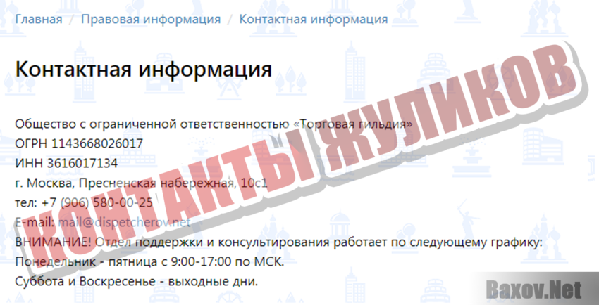 В качестве владельца сервиса обозначено Общество с ограниченной ответственностью «Торговая гильдия». Есть такое, даже функционирует с 2014-го года. Вот только не очень верится, что хоть какое-то отношение к сайту имеет.