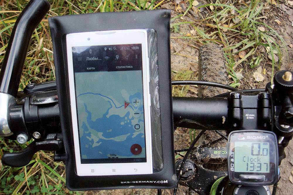 Крепление для смартфона или навигатора на руль. Когда проезжаешь нужный поворот и спускаешься с горы, цена ошибки — подъем в гору с груженым велосипедом. Чтобы ориентироваться в пути, я прикрепляю к рулю навигатор. Такие стоят 500—1500 Р и продаются в веломагазинах или на «Алиэкспрессе».