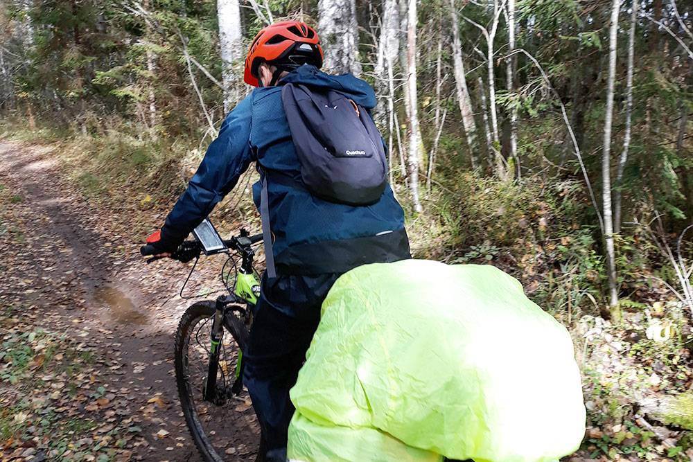 Я вожу в маленьком заплечном рюкзаке кошелек, документы и перекус. Тяжелые вещи в него класть не стоит: обычный рюкзак сковывает движения при езде, а вес распределяется неправильно. На подъемах и спусках ехать с заплечным рюкзаком трудно
