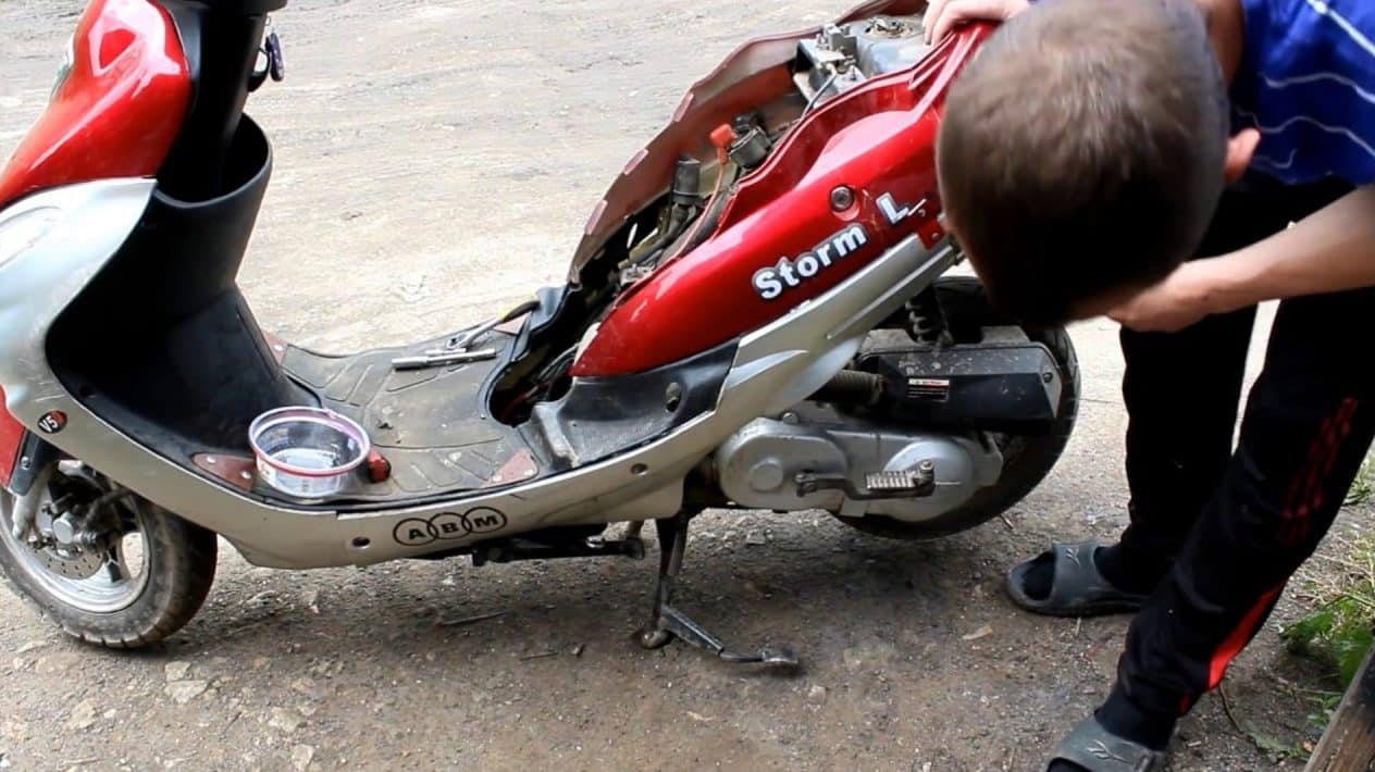 Начать надо с внешней очистки скутера от грязи, песка, пыли. Сами работы нужно проводить в закрытом помещении, где нет риска попадания внутрь механизмов мусора извне. Допускается осуществление операций на открытом воздухе, но с соблюдением условий: